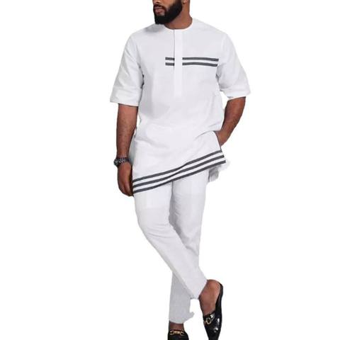 2023 мужской летний комплект в африканском стиле, комплект из 2 предметов, белая модная африканская Мужская традиционная одежда, рубашка с коротким рукавом и брюками